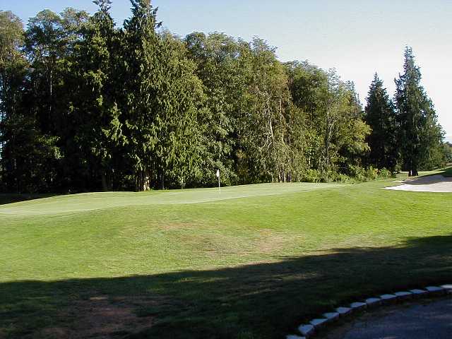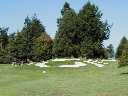 | Bunkers present throughout, but I must say I didn't manage to find any in my trials. You will find both fairway and greenside bunkers. The most famous bunker or set of bunkers perhaps in the Pacific Northwest are the 11 bunkers in front of the 3rd green that are in the shape of a crab. There are some water hazard areas as well as some OB (but no in course OB). The OB is the course boundaries, which sometimes consist of housing. The housing to date is only on the first few holes, and doesn't seem to present a major distraction. |