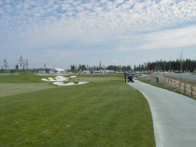 | The fairways are firm and really cut close. If you are used to the more common fluffy lies of most Pacific NW fairways where the ball kinda sits up, you are in for a surprise here. Also bring a low/no bounce wedge if you plan on playing lofted cut type shots here. It was difficult to get high bounce wedges under the ball. I didn't notice any damp spots to speak of, and the roll out on the tee shots was good. The fairways themselves are rather wide, and the landing areas are pretty generous. Usually if you miss you will be in one of the many bunkers, or perhaps a water hazard or waste area. |